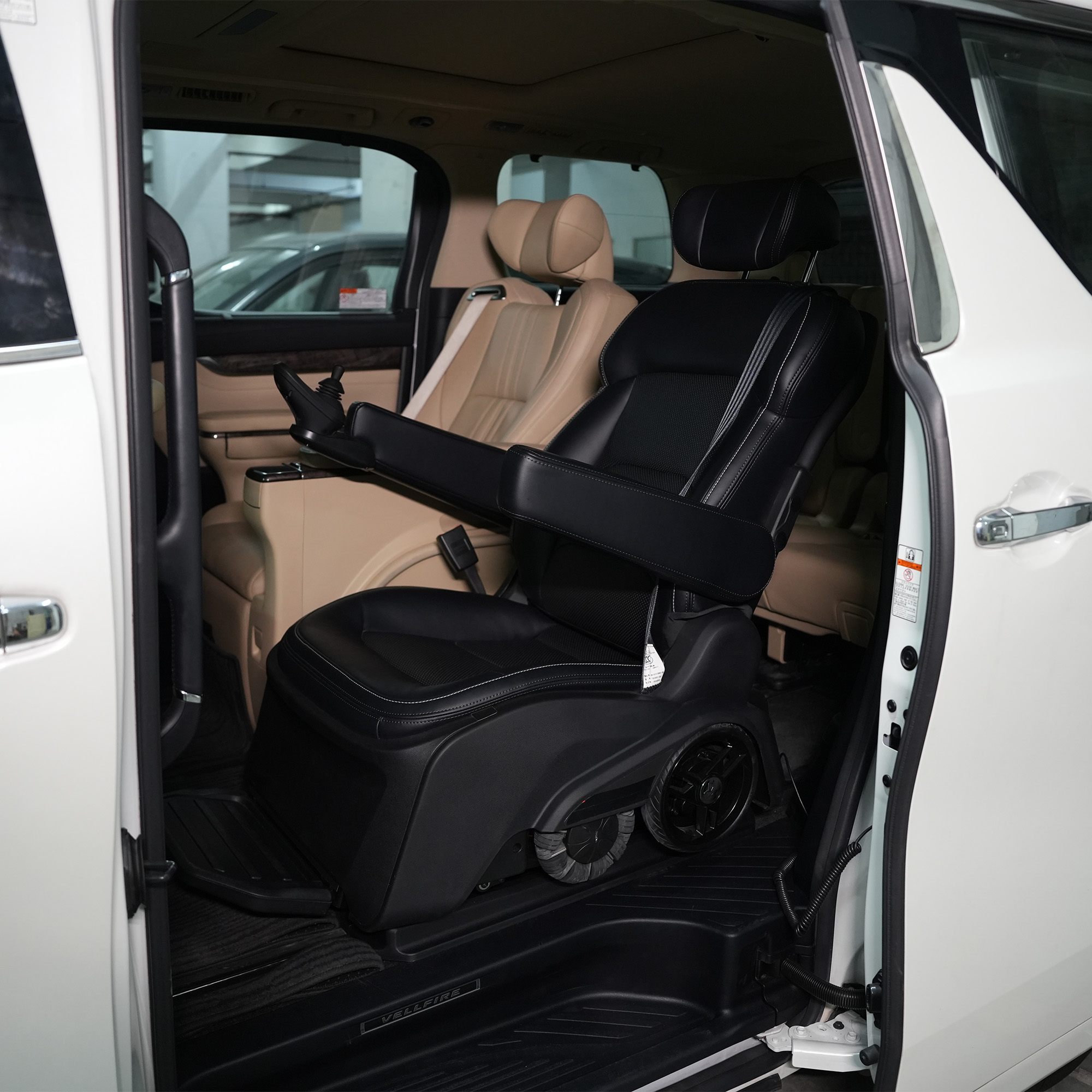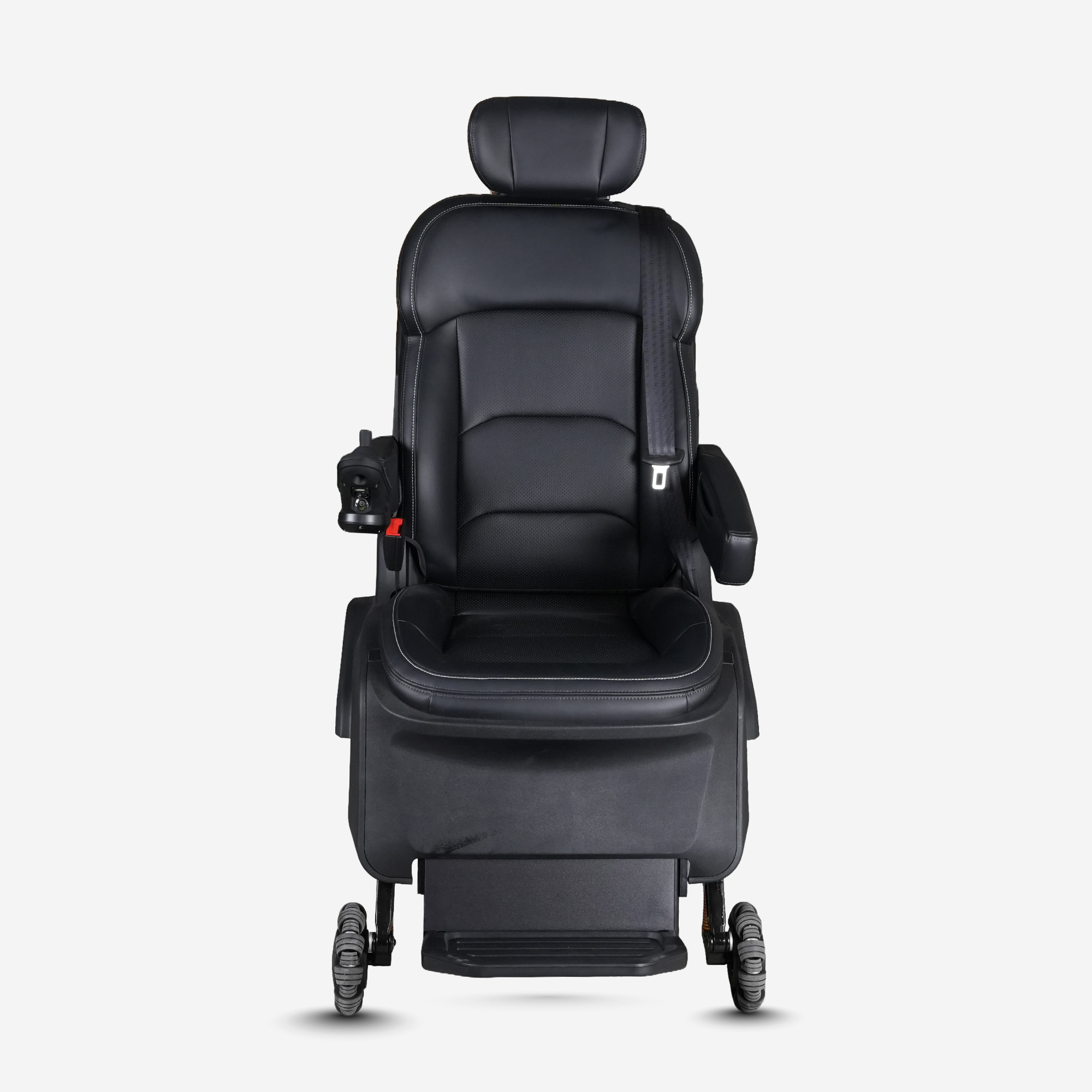 The Orbit Roll Swivel Seat is installed in the middle row of MPVs and commercial vehicles, this detachable swivel seat rotates outward, lowers to the ground, and can be released completely to function as a wheelchair.